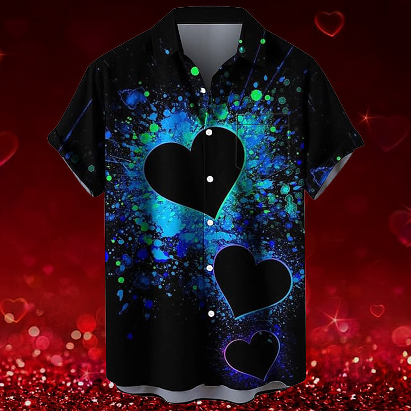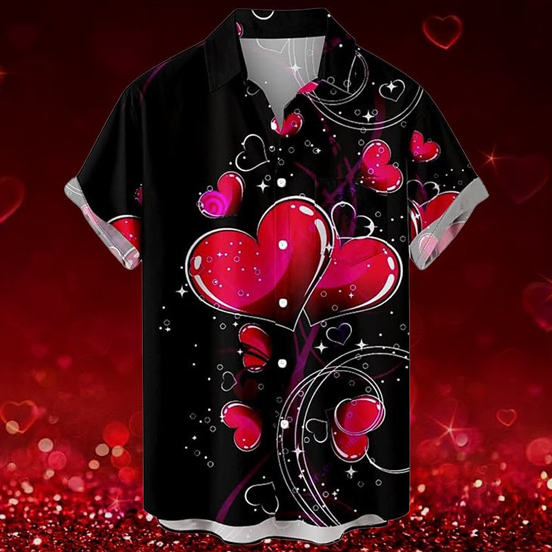 Valentine's Day Heart Romantic Men's Resort Hawaiian 3D Printed Shirt Button Up Short Sleeve Summer Beach Vacation Daily Wear S TO 3XL
