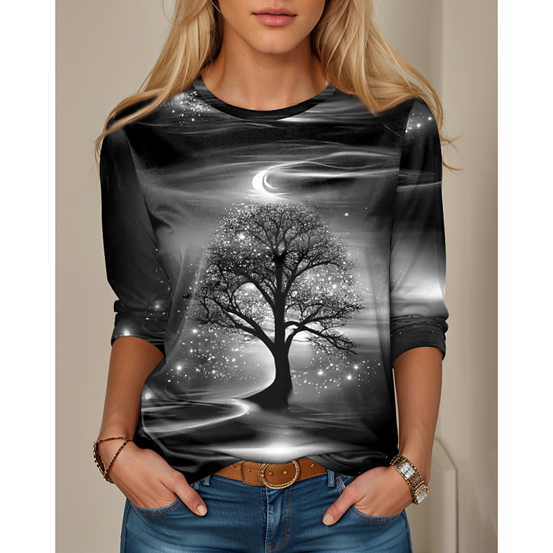 Women's T shirt Crew Neck Long Sleeve Tunic Casual Print Regular Tops Daily Blue Purple Green Spring Fall