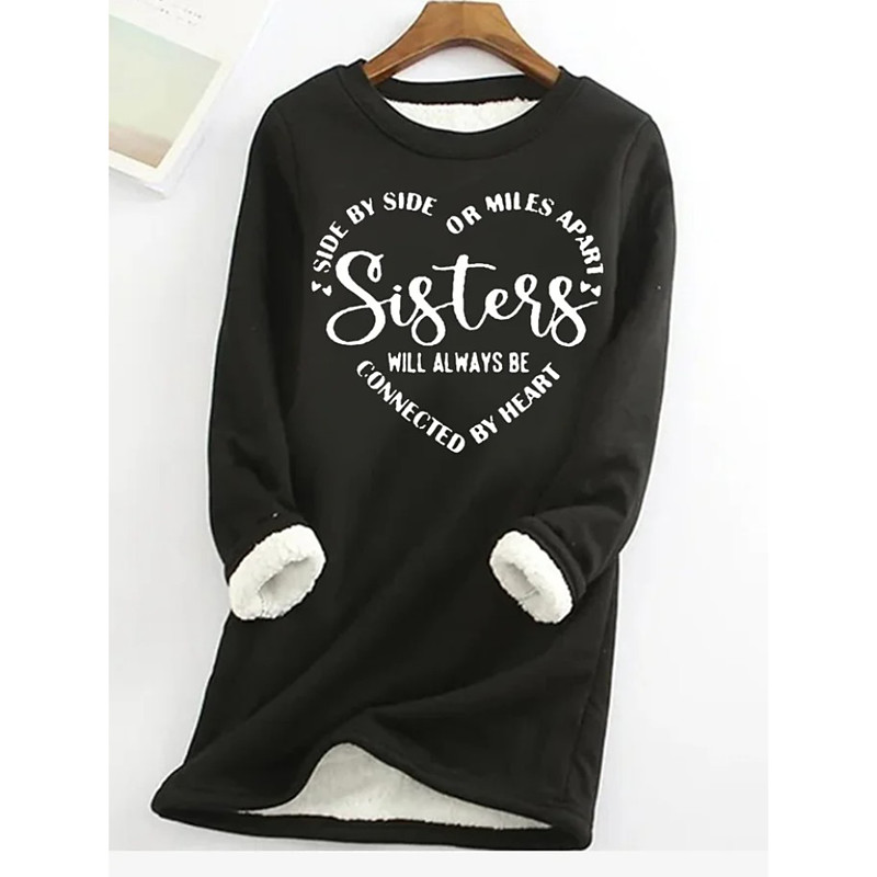Women's Pullover Sweatshirt Graphic Letter Warm Casual Fuzzy Long Sleeve Crew Neck Round Neck Regular Tops Street Casual Black Pink Red Blue Gray Spring Fall Winter