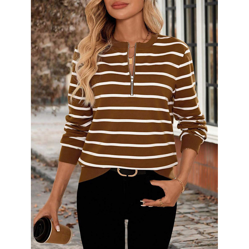 Women's Pullover Sweatshirt Zip Up Sweatshirts Graphic Striped Fashion Casual Long Sleeve Crew Neck Regular Tops Street Dailywear Zipper Print Black White Brown Fall Winter