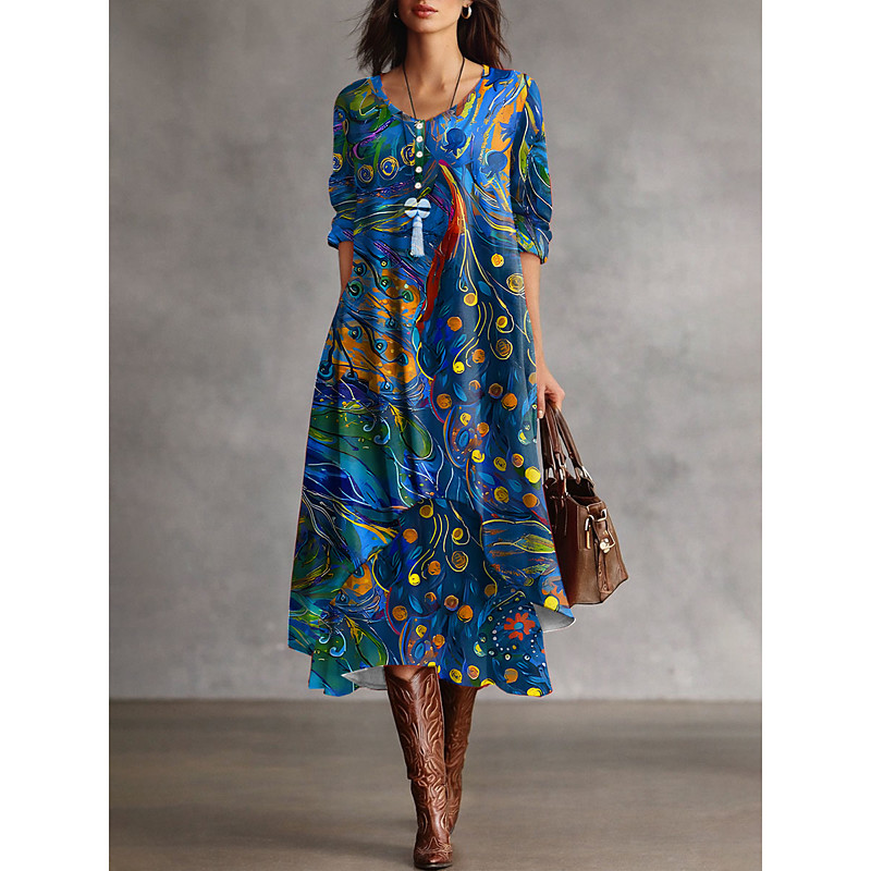 Women's Tunic Graphic Abstract Elegant Vintage Fashion Long Sleeve Crew Neck Round Neck Long Tops Daily Weekend Print Blue Purple Gold Green Spring Fall Winter Prefall