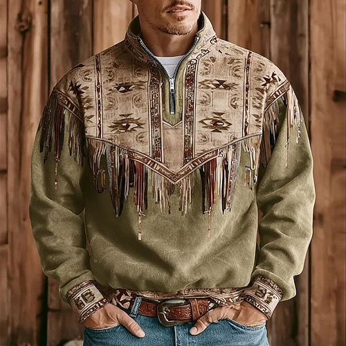 Per uomo Azteco Tribale Felpa Etnico Vintage Retrò Manica Lunga Collo alla coreana All'aperto Lavoro Regalo Nero Marrone Verde Cerniera Autunno Inverno progettista S M L XL XXL XXXL