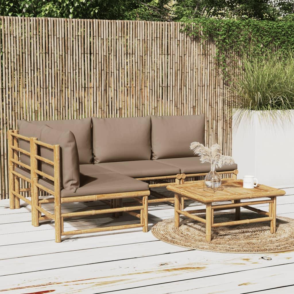 Loungesæt til haven 5 dele med gråbrune hynder bambus