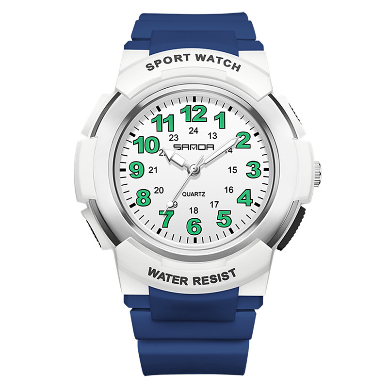 SANDA Women Men Kids Quartz Watch Large Dial Sports Fashion Wristwatch Luminous Waterproof Silicone Watch