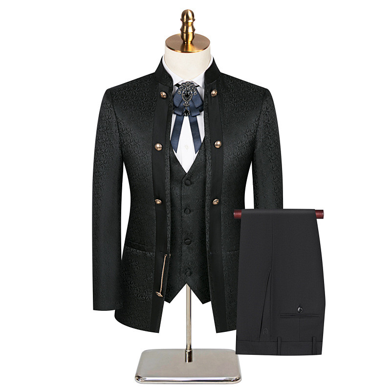 Men's Casual Prom Party Suits Mandarin Collar Blue Black Fashion Luxury Patterned Slim Fit 3 Piece Double Breasted Six-buttons