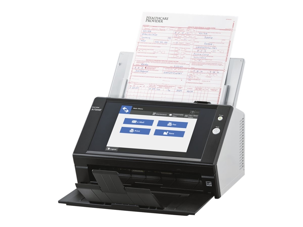 Ricoh Image Scanner N7100E - Dokumentskanner - Dobbel CIS - Dupleks - 216 x 355.6 mm - 600 dpi x 600 dpi - inntil 25 spm (mono) / inntil 25 spm (farge) - ADF (50 ark) - inntil 4000 skann pr. dag - Gigabit LAN