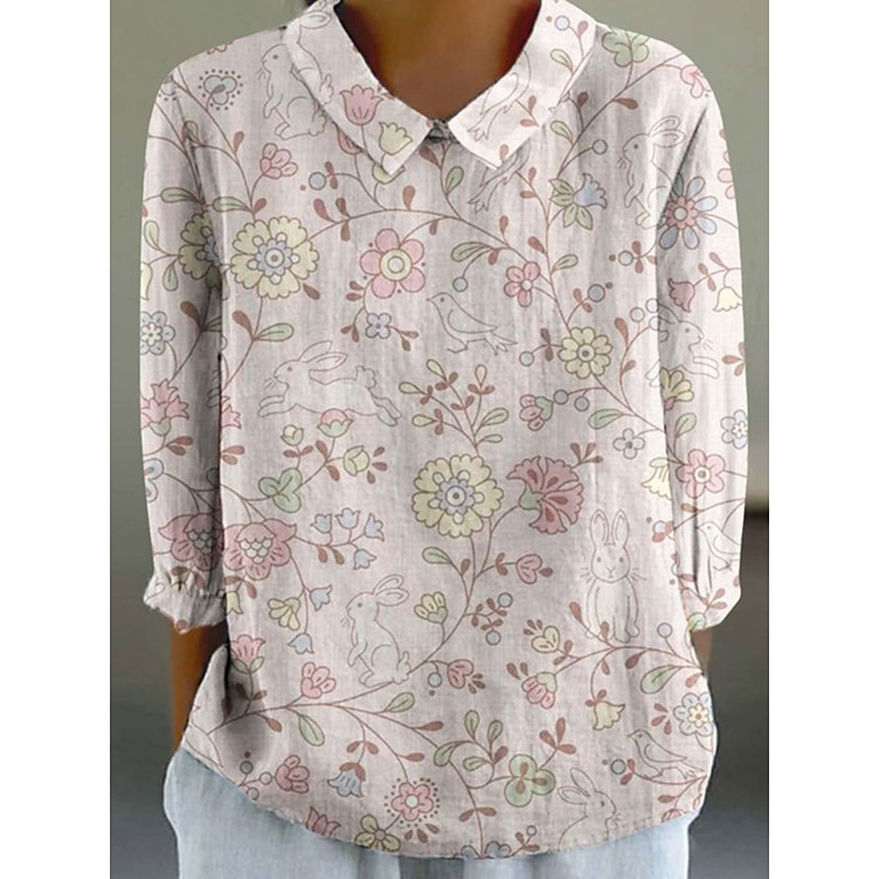 Women's Blouse Long Sleeve Fashion Floral Print Regular Tops Crew Neck Work White Pink Blue Green Spring Fall
