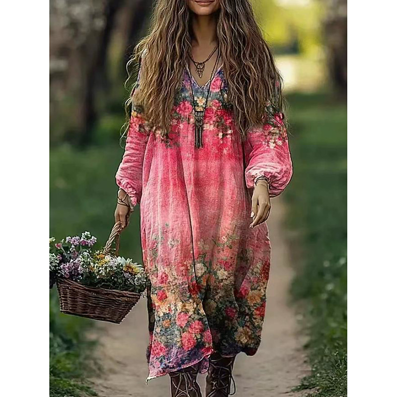 Women's Boho Dress Floral V Neck Maxi Dress Vintage Dress Print Dress Fashion Modern Summer Spring