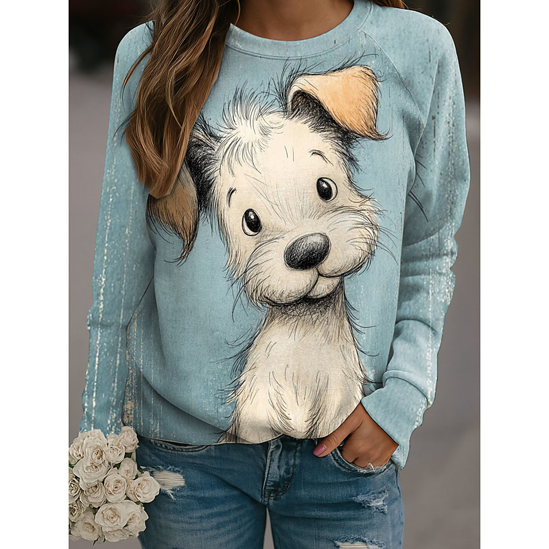 Women's Pullover Graphic Animal Casual Long Sleeve Crew Neck Regular Tops Casual White Yellow Blue Spring Fall Winter