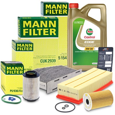 Mann-filter Inspektionspaket B + 5 L CASTROL EDGE FST 5W-30 LL [Hersteller-Nr. 10492114] für Skoda, Seat, Audi, VW