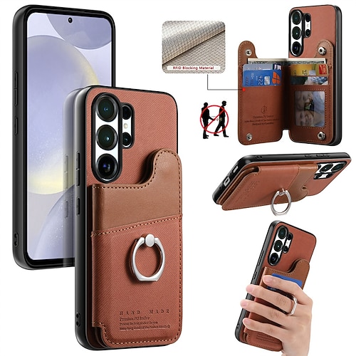Handy Hülle Handyhüllen Für Samsung Galaxy S26 S26 Plus S26 Ultra Rückseite Mit Ständer Ringhalter Kartenfach Retro TPU PU-Leder