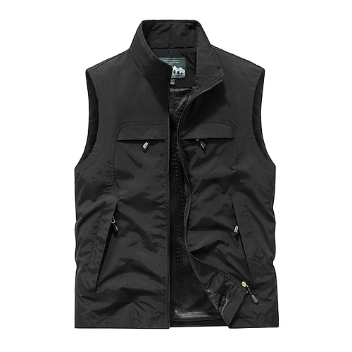 Per uomo Gilet da esterno Gilet Gilet da pesca All'aperto Quotidiano Moda Casual Primavera Autunno Tasca Nylon Confortevole Semplice Cerniera Colletto Mao Vestibilità regolare Nero Cachi Verde