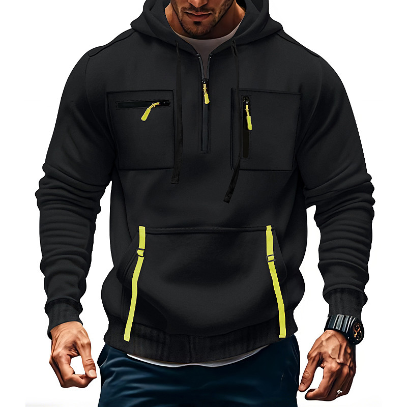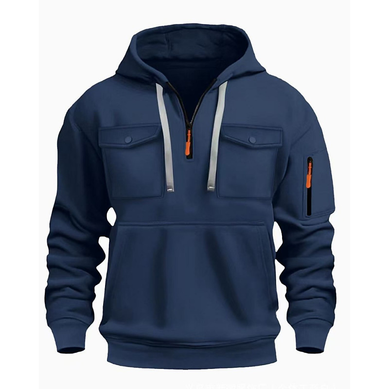 Men's Hoodie Quarter Zip Hoodie Tactical Hoodie Black Army Green Navy Blue Khaki Light Grey Hooded Plain Pocket Sports Outdoor Casual Daily Streetwear Cool Sportswear Spring Fall Clothing Apparel