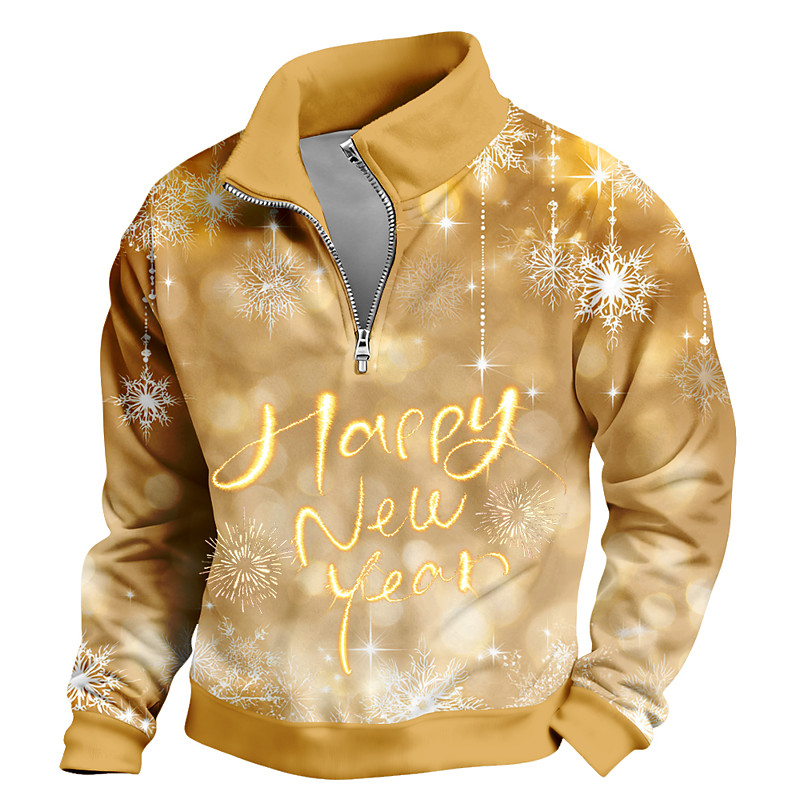 New Year Men's Happy New Year Sweatshirt Cool Daily Stylish Stand Collar Outdoor Home Gift Blue Red Purple Gold Zipper Fall Winter Designer S M L XL XXL XXXL