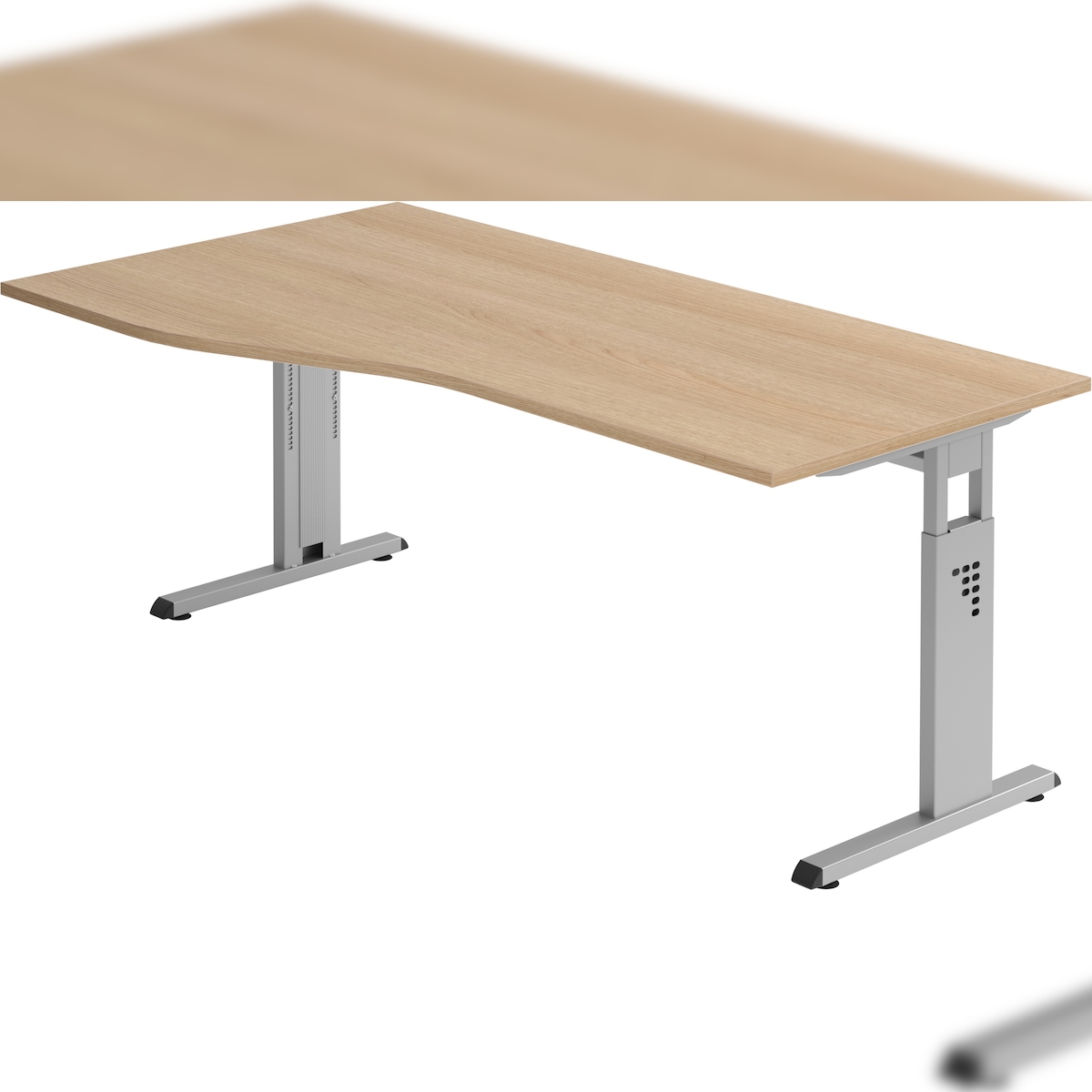 bümö höhenverstellbarer Schreibtisch O-Serie 180x100 cm in Eiche, Gestell in Silber - großer PC Tisch für's Büro manuell höhenverstellbar,