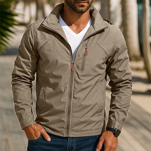 Per uomo Giacca da Esterno Giacca Tattica Giacca antivento Streetwear Casuale Impermeabile Antivento Tasca Primavera Autunno Tinta unica Casual Collo ripiegato Regolare Nero Blu marino Cachi Verde