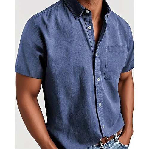 Per uomo Camicia Camicia Estiva Camicia casual Camicia da Spiaggia Camicia con Bottoni Nero Bianco Rosa Rosso Blu marino Manica Corta Tinta unica Bavero Vacanza Casuale Tasca Abbigliamento Moda
