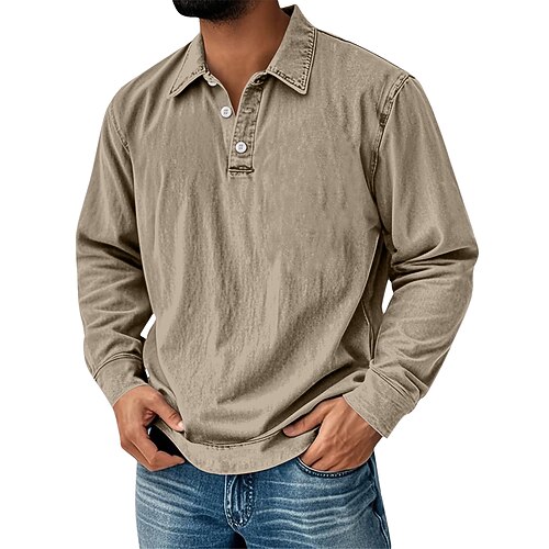 Per uomo Polo in Cotone Polo da Golf Affari Casuale Bavero Classico Manica Lunga Vintage Moda Tinta unica Semplice Stile Vintage Lavato Autunno Inverno Tutte le stagioni Vestibilità regolare Marrone