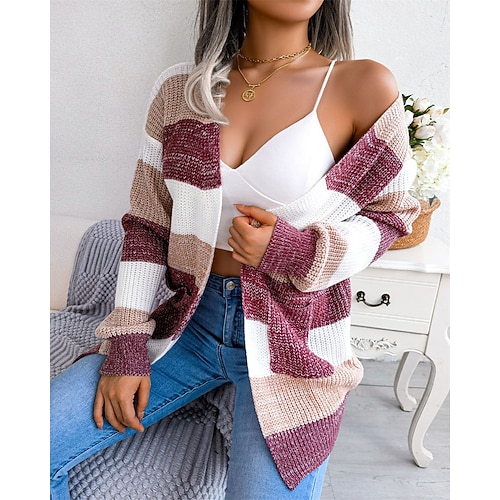 Per donna Felpa Cardigan Elegante Moda Streetwear Tinta unica Blocco di colori A righe Scollo a V Tasca Lavorato a maglia Manica a Lanterna Manica Lunga Top lunghi Maglia All'aperto Quotidiano Uscire