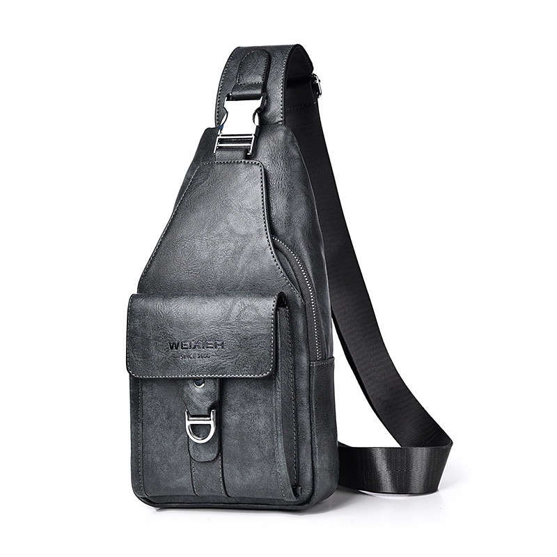 Men's Brown Faux Leather Crossbody Bag - Waterproof and Scratch-resistant Chest Bag with Adjustable Shoulder Strap for Travel, Work or Daily Casual Party Use