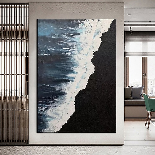 dipinto ad olio fatto a mano nero Pittura a olio astratta bianca Paesaggio su tela Pittura minimalista strutturata Pittura a olio astratta di grandi dimensioni Decorazione domestica di arte moderna