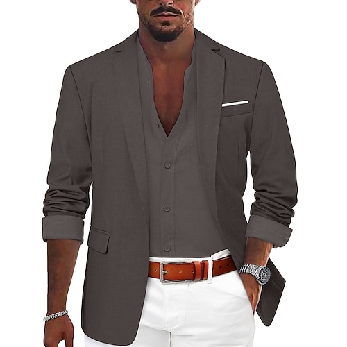 Per uomo Giacca sportiva Blazer di lino Di tendenza Informale Tinta unita Blazer in lino Verde militare Nero Blu Taglio sartoriale Monopetto - 1 bottone
