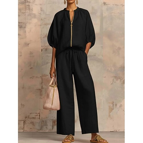 Per donna Set di biancheria in cotone Set da due pezzi Set di Pantaloni Manica Lunga Colletto a Camicia Semplice Moda Streetwear Abbigliamento quotidiano Data Nero Bianco Giallo Estate Vestibilit