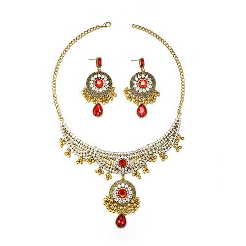 elegante collana girocollo di perle e cristalli con orecchini coordinati, disponibile in più colori (rosso, blu, rosa, nero, bianco)