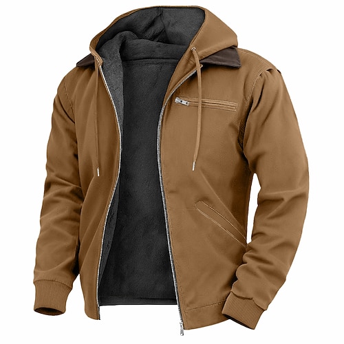 Per uomo Felpa con cappuccio Felpa con cappuccio a zip intera Felpa con cappuccio in pile Felpa con cappuccio foderata in pile Blu Marrone Verde Grigio Con Cappuccio Semplice Cerniera Sport Outdoor