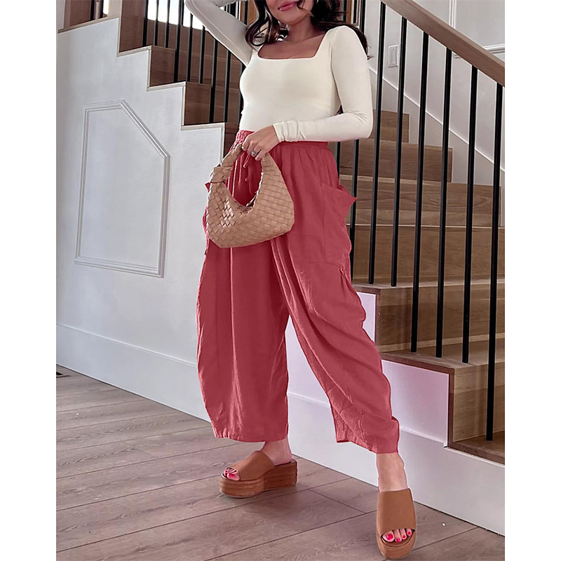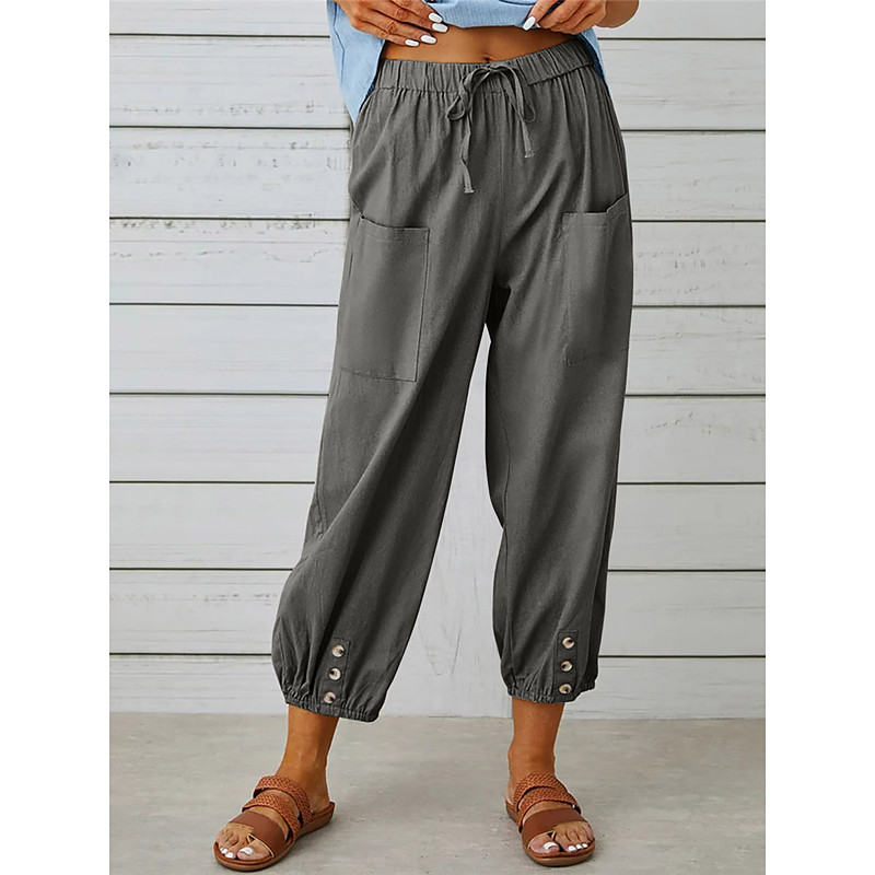 Women's Loungewear Pants Lounge Pants Simple Casual Comfort Pure Color Pocket Elastic Waist Cotton Linen Pants Vacation Home Daily Black White Army Green Navy Blue Blue Summer Spring Fall