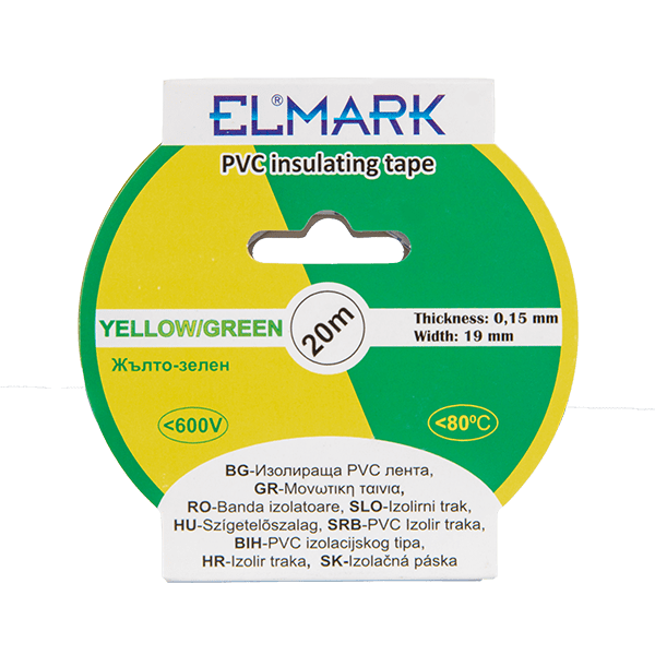 Elmark isolerende PVC tape 19mm - 20 meter lengte - geel/groen