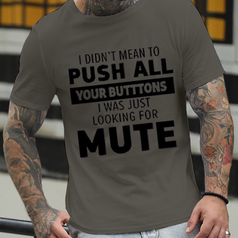 Men's Funny Graphic T-Shirt 'I Didn't Mean To Push All Your Buttons Mute' Wordplay Short Sleeve Humor Tee
