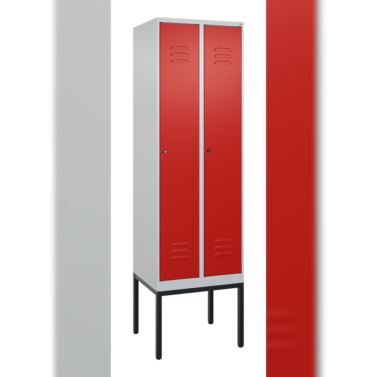 C+P Spind Classic PLUS, Gestell, 2 Abteile, HxBxT 212x60x50cm, Zylinderschloss, Hellgrau/Rot von PROREGAL