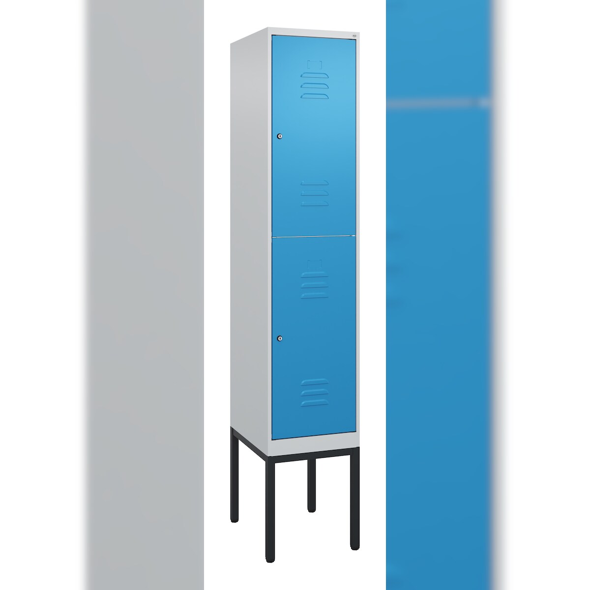 C+P Spind Classic PLUS, Gestell, 2 Abteile, HxBxT 212x40x50cm, Zylinderschloss, Hellgrau/Lichtblau von PROREGAL