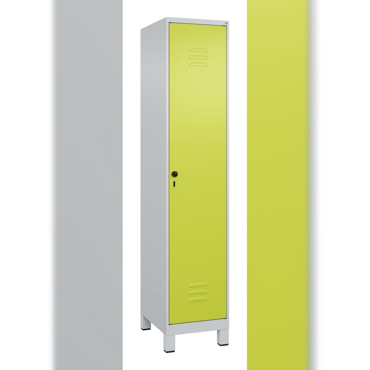 C+P Spind Classic PLUS, Füßen, 1 Abteil, HxBxT 195x40x50cm, Sicherheitsdrehriegel, Hellgrau/Clowngrün von PROREGAL