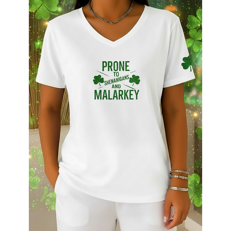 St. Patrick's Day Women's T Shirt Tee Top Shamrock Stylish Classic Casual Short Sleeve V Neck Regular Tops Daily Beach Wear Vacation Wear Print White Green Summer Spring