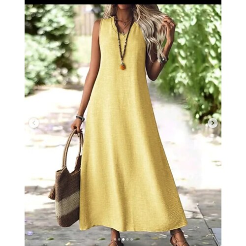 Per donna Abito Midi Vestito Casual Classico Moderno All'aperto Vacanza Quotidiano Vestibilità regolare Semplice Senza Maniche Scollo a V Nero Giallo Vino Viola Estate