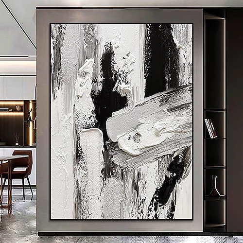 Dipinto a olio fatto a mano su tela, decorazione da parete, semplice, astratto, bianco e nero, con texture floreale, per la decorazione della casa, dipinto appeso su telaio teso/dipinto arrotolato