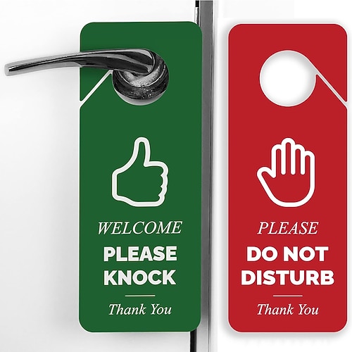 Cartello da appendere alla porta Non disturbare - bifacciale rosso e verde, Non disturbare e Benvenuti, Benvenuti, Benvenuti. Ideale per ufficio, casa, clinica, dormitorio, lezioni online,