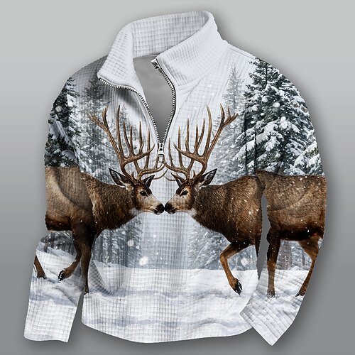 Per uomo Cervo Nido d'ape Felpa Moda Quotidiano Classico Casual Collo alla coreana Zip a un quarto All'aperto Casa Ufficio Lavoro Bianco 1 Bianco 2 Bianco 3 Con zip Autunno Inverno progettista S M L