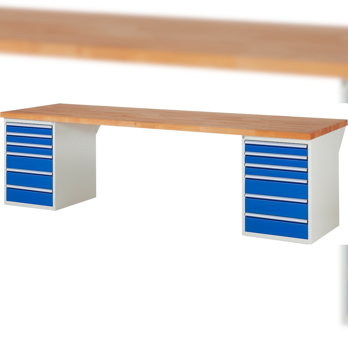 PROREGAL Werkbank Serie 7000 - Modell 7126 | HxBxT 79-114x200x90cm | 3x Schublade | Schubladenmaße 1x60 + 1x120 + 1x180mm
