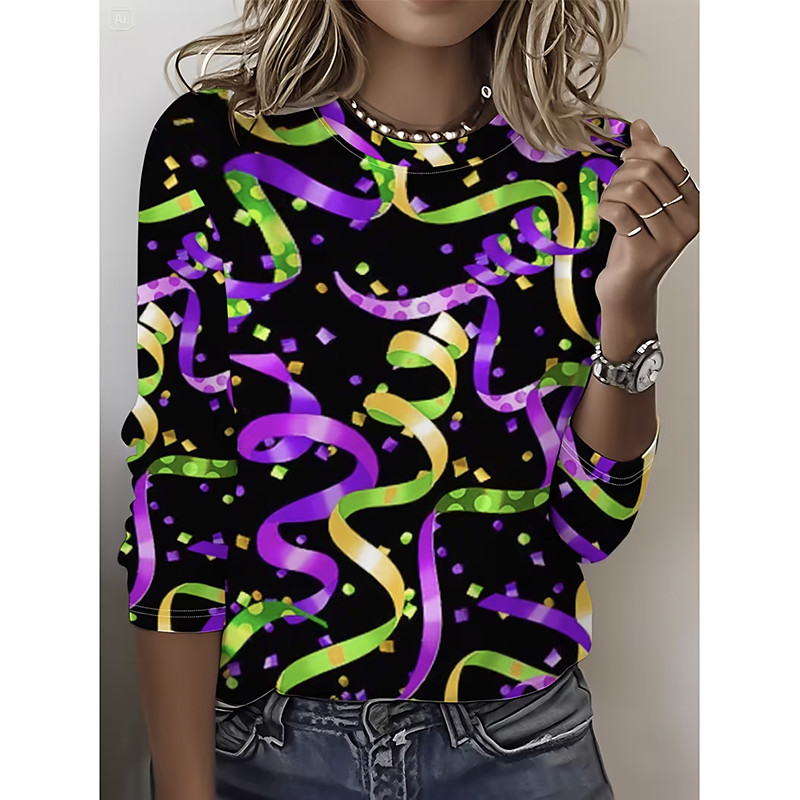 Carnival Women's T Shirt Graphic Fashion Casual Long Sleeve Crew Neck Round Neck Regular Tops Daily Weekend Print Purple Summer Spring Fall