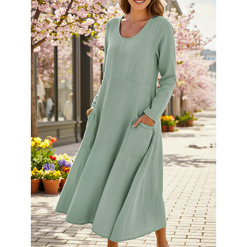 Women's Midi Dress Cotton Linen Dress Fashion Modern Daily Outdoor Vacation Loose Fit Plain Long Sleeve Crew Neck White Light Green Pink Light Blue Summer Spring Fall