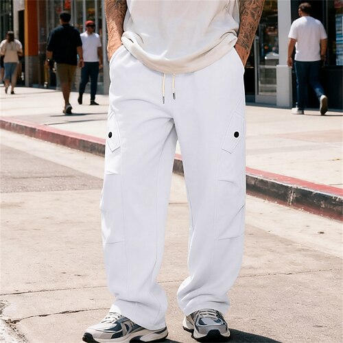 Per uomo Pantaloni sportivi Pareggiatore Pantaloni Pantaloni della tuta cargo Tasche A cordoncino Vita elastica Liscio Comfort Sportivo Giornaliero Di tendenza Informale Nero Bianco Media elasticità