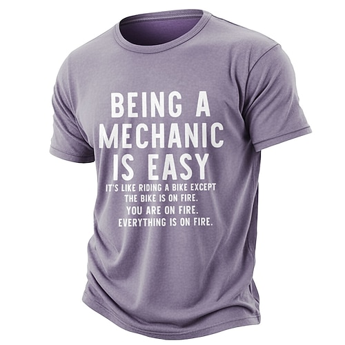Essere un meccanico è facile, è come andare in bicicletta, solo che la bicicletta è in fiamme, tu sei in fiamme, tutto è in fiamme, maglietta divertente da meccanico, misto cotone lavato e rovinato,