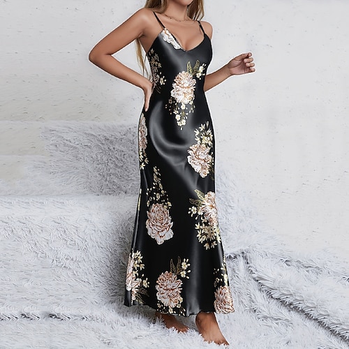 Per donna Camicia da Notte Casual Morbido Raso Floreale Senza schiena Quotidiano Casa Da letto Senza Maniche Spalline Blu Nero Rosso Verde Estate Vestibilità comoda