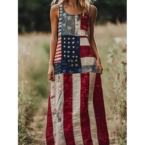 Giorno dell'Indipendenza Per donna Abito lungo maxi Vestito Casual Abito Sottoveste Moda Essenziale Moderno Quotidiano All'aperto Spiaggia Vestibilità comoda Bandiera Americana Senza Maniche Girocollo