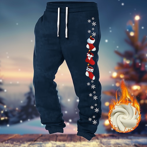 Natale Per uomo Fiocco di neve Calzini Pantaloni da tuta in pile Vita elastica con coulisse Casual All'aperto Casa Abbigliamento da sera Tasca Termico Inverno Stampa 3D Verde scuro Nero Blu