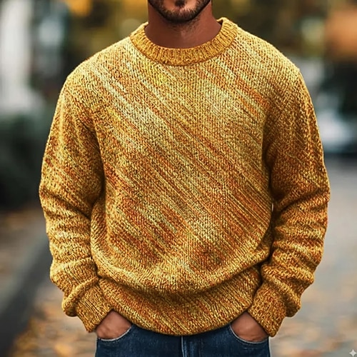 Per uomo Blocco di colori Maglione Maglieria Girocollo Retrò Vintage Casual Vacanza Casa Streetwear Stampa 3D Lavoro a maglia Tenere al caldo Manica Lunga Primavera Autunno Inverno Giallo Multi Color