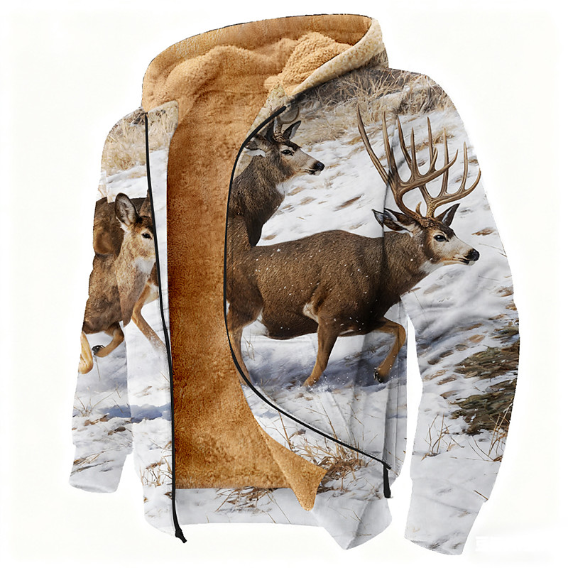 Men's Deer Fleece Hoodie Jacket Sweatshirt Classic Hunting Long Sleeve Crew Neck Outdoor Camping Brown Green Dark Gray Zip Up Fall Winter Designer S M L XL 2XL 3XL
